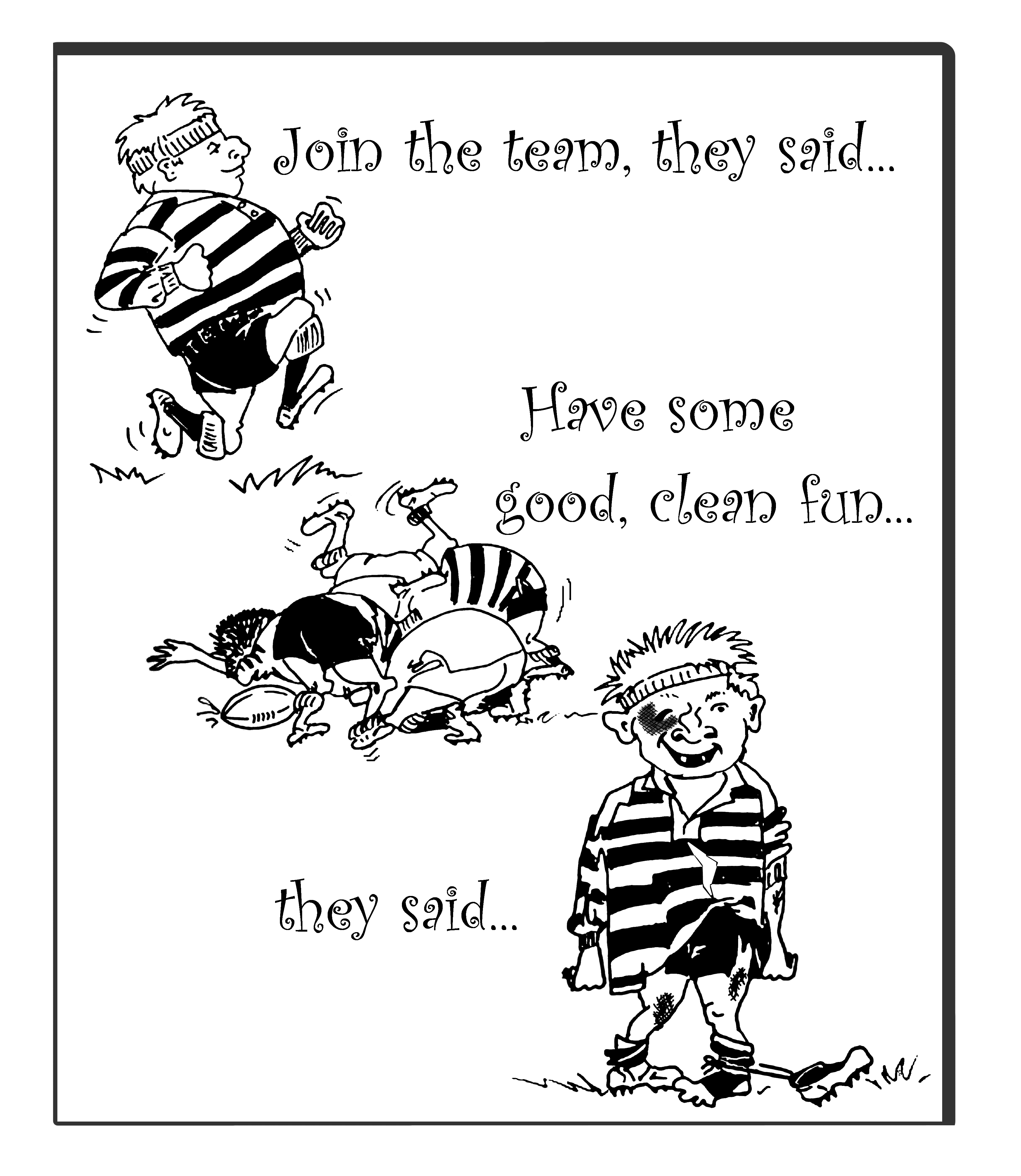 Rugby cartoon April 26, 2015 3808 × 4384 Illustrations Join the team, they said Have some good, clean fun, they said… Like Loading...